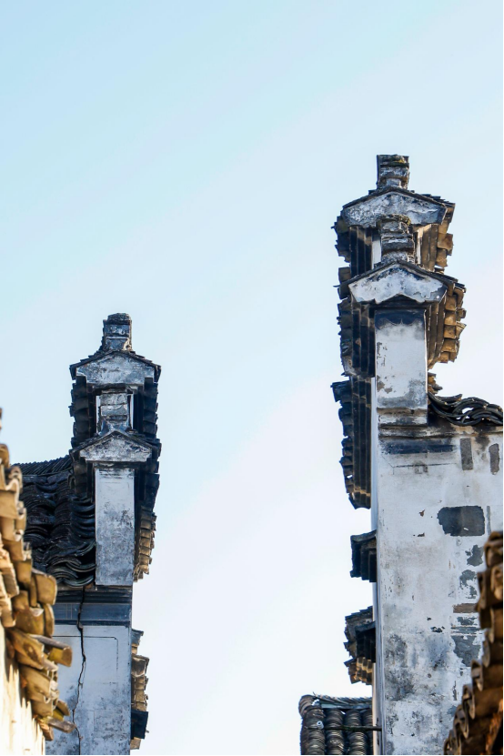 以白墻黑瓦、飛檐翹角的馬頭墻
