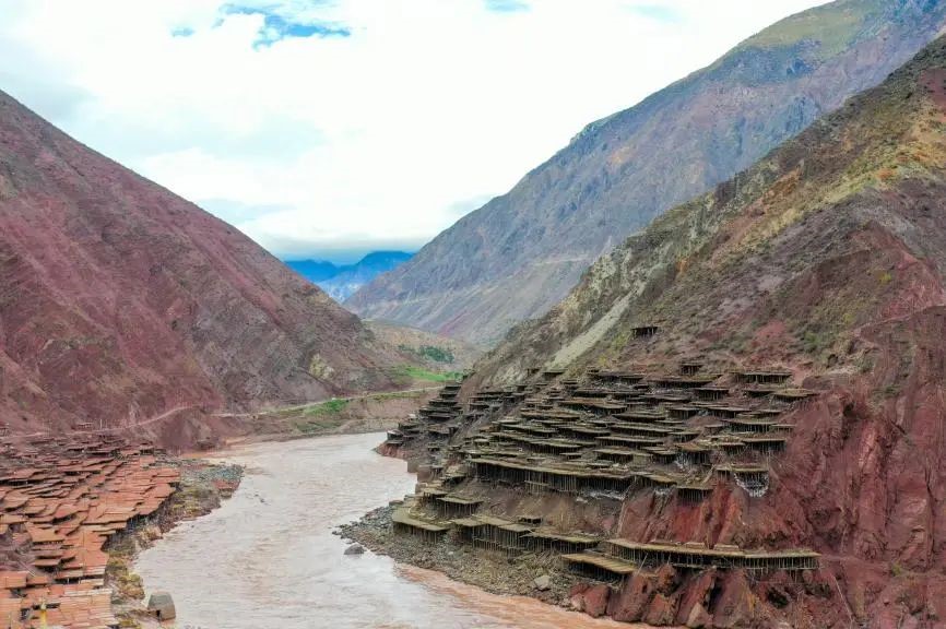 架設(shè)在山坡一側(cè)的鹽田