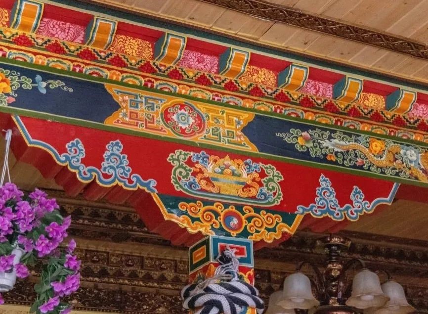 桑嘎村 西繞民居 佛堂大梁上的彩繪
