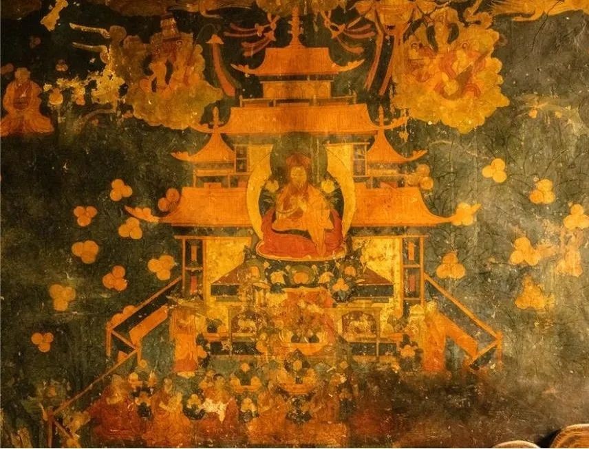 科迦村 江白丹增民居佛堂東墻繪制的貢嘎桑布佛像