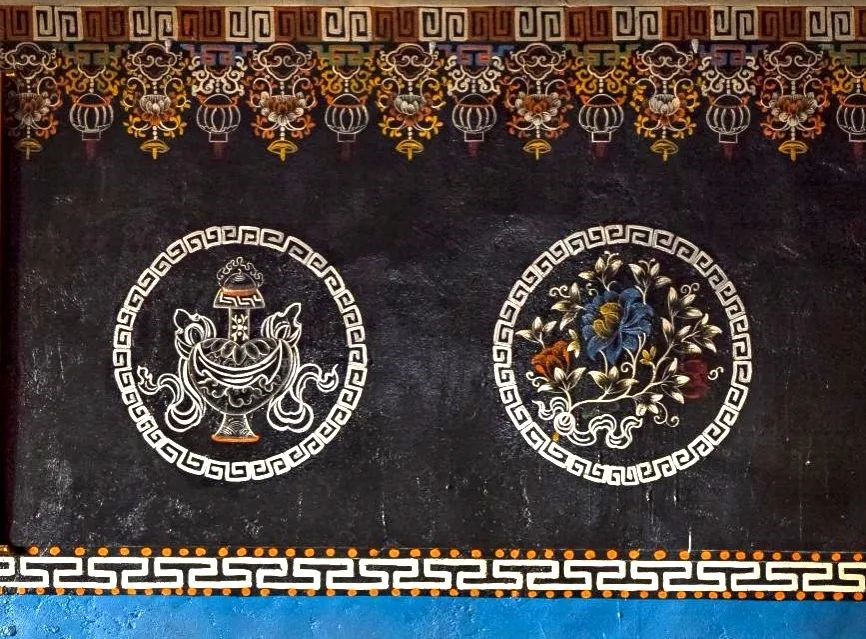 崗嘎村 傳統(tǒng)民居堂屋墻壁上繪制的寶瓶和蓮花